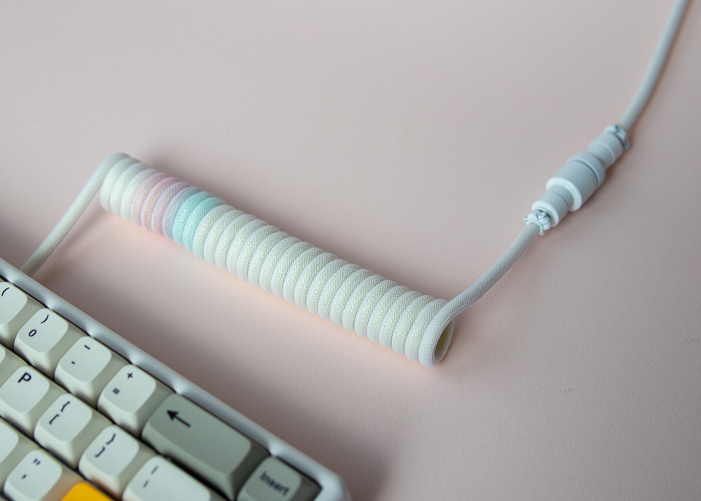 컬러케이블에 화이트 폴리매쉬로 레이어드 되어